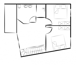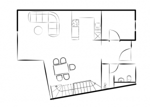 105 m², 1 – 4 Personen, Wohnzimmer und Esszimmer, offene Küche, Galerie, 2 Schlafzimmer, 2 Bäder, Terrasse, Abstellraum